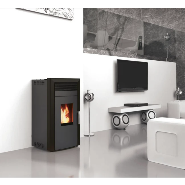 Côté esthétique : le modèle est bien ajusté. Son design moderne facilite une intégration harmonieuse dans tous les intérieurs. Son gabarit compact assure un gain de place, tout en disposant d’un réservoir à granulés de forte capacité (25 kg) pour plus d’autonomie (jusqu’à 21h).