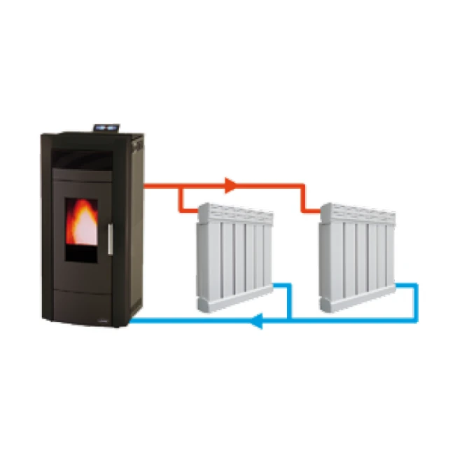 Le Baracuda Commo fonctionne comme un chauffage central. Avec ses 15kW de puissance, il peut alimenter jusqu’à 11 radiateurs. Super-équipé, ce poêle intègre tous les équipements hydrauliques nécessaires au fonctionnement du chauffage, ce qui simplifie grandement son installation.