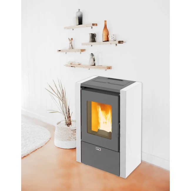 Le poêle à granulés Mignon s’intègre parfaitement dans tous les styles de décorations intérieurs avec son design moderne et son petit gabarit. Le plus : sa vitre sérigraphiée qui apporte une touche de légèreté et de modernisme supplémentaire au poêle.