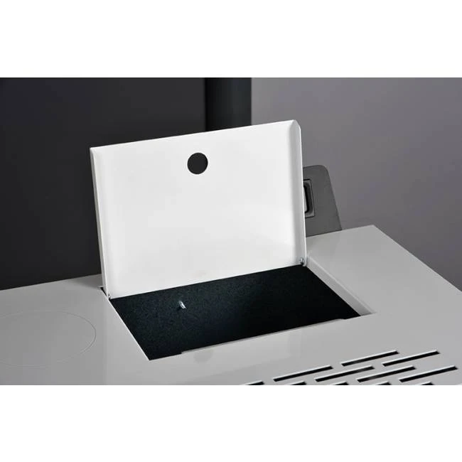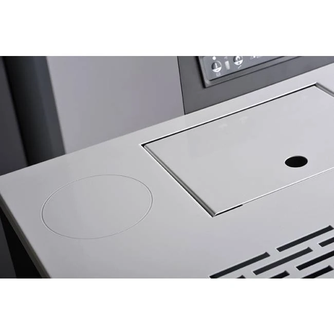 Le plus : une caractéristique permet au Vulcano 9 kW de se démarquer des autres modèles du marché. Sa sortie sur le dessus offre un vrai gain de place et un confort d’utilisation par rapport aux modèles ne disposant que d’une sortie des fumées située à l’arrière de l’appareil. L’avantage : une installation plus harmonieuse dans votre pièce de vie.