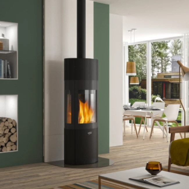 Avec son design ovale, le poêle à bois Arnel s’intègre parfaitement dans votre salon pour vous offrir une chaleur agréable. Fabriqué en France, ce poêle Godin dispose d’une puissance de 7,2 kW et d’un rendement de 76,7%. Son habillage en acier est un véritable atout pour restituer rapidement et uniformément la chaleur dans votre pièce. Côté design, sa forme ovale offre une belle vue sur les flammes avec un foyer pouvant accueillir des bûches jusqu’à 33 cm. s