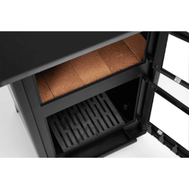 Chauffez votre salon tout en profitant de son four pour la cuisson de vos plats. Doté d’une puissance de 13 kW et d’un rendement de 79%, le poêle à bois Paula vous garantit une montée rapide en température. Grâce à son revêtement en acier, il est capable de chauffer très vite votre intérieur. Le four équipé de briques réfractaires et d’un thermomètre intégré vous permet de faire cuire vos plats à parfaite température.