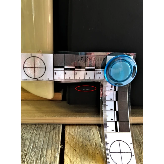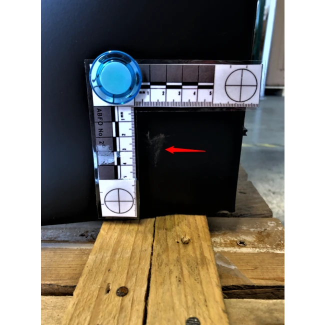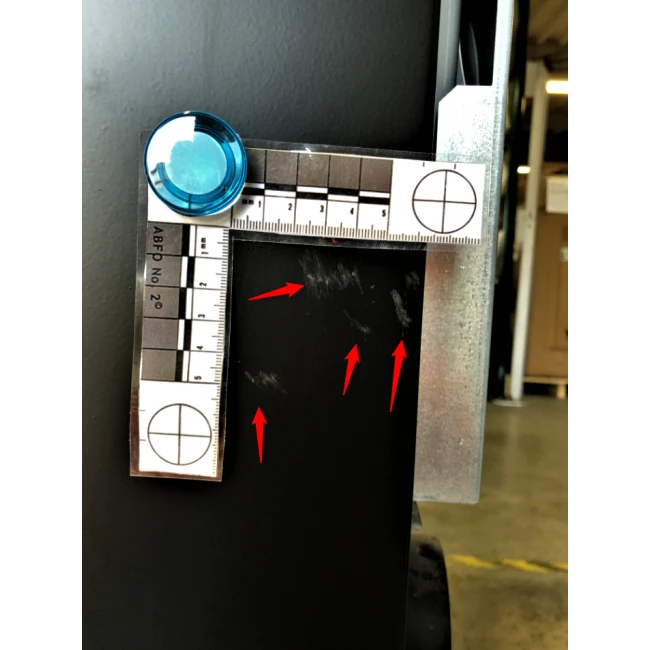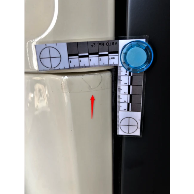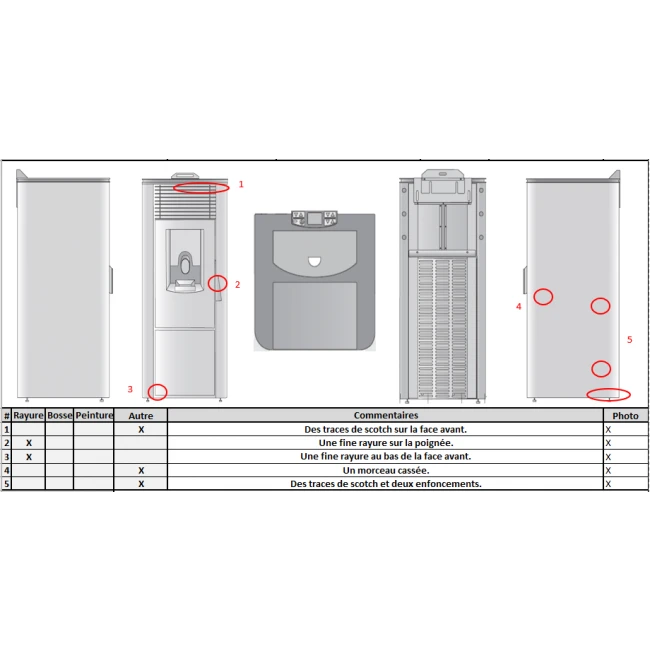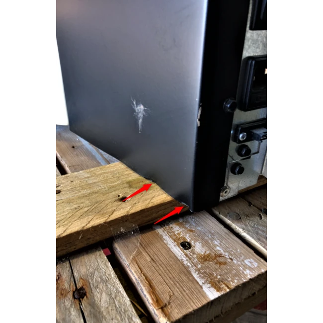 Des traces de scotch et deux petits enfoncements sont sur le bas du côté