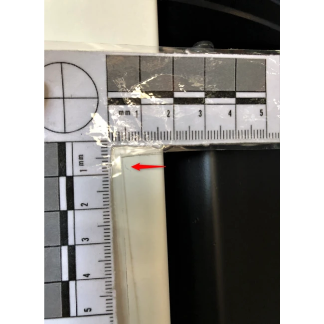 Des rayures sont sur le haut et le bas du côté droit ainsi qu’une tâche