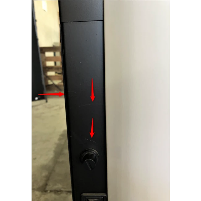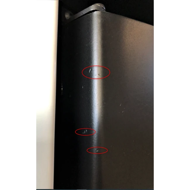Plusieurs rayures se trouvent sur la porte et la poignée du poêle.